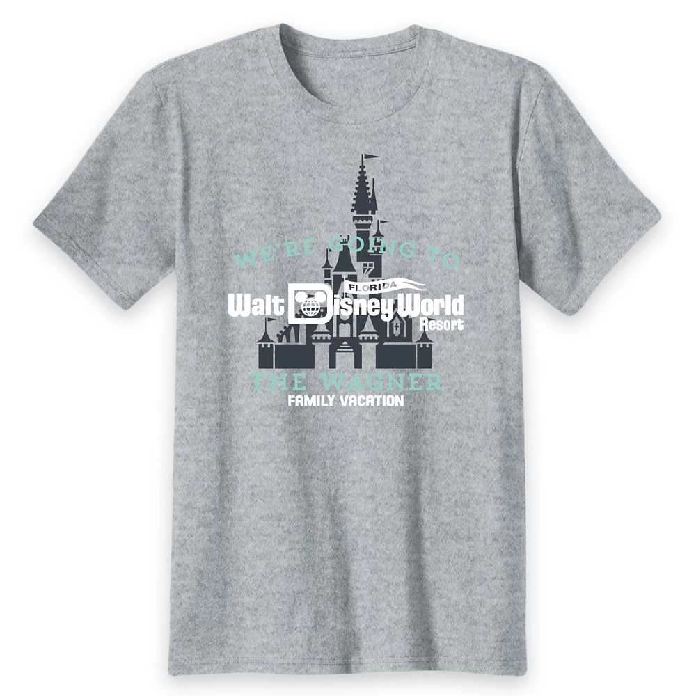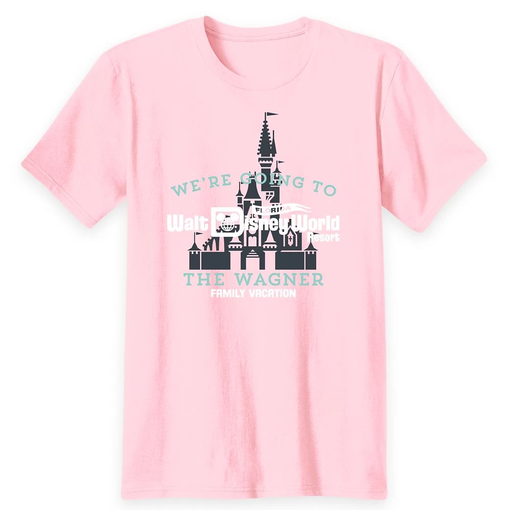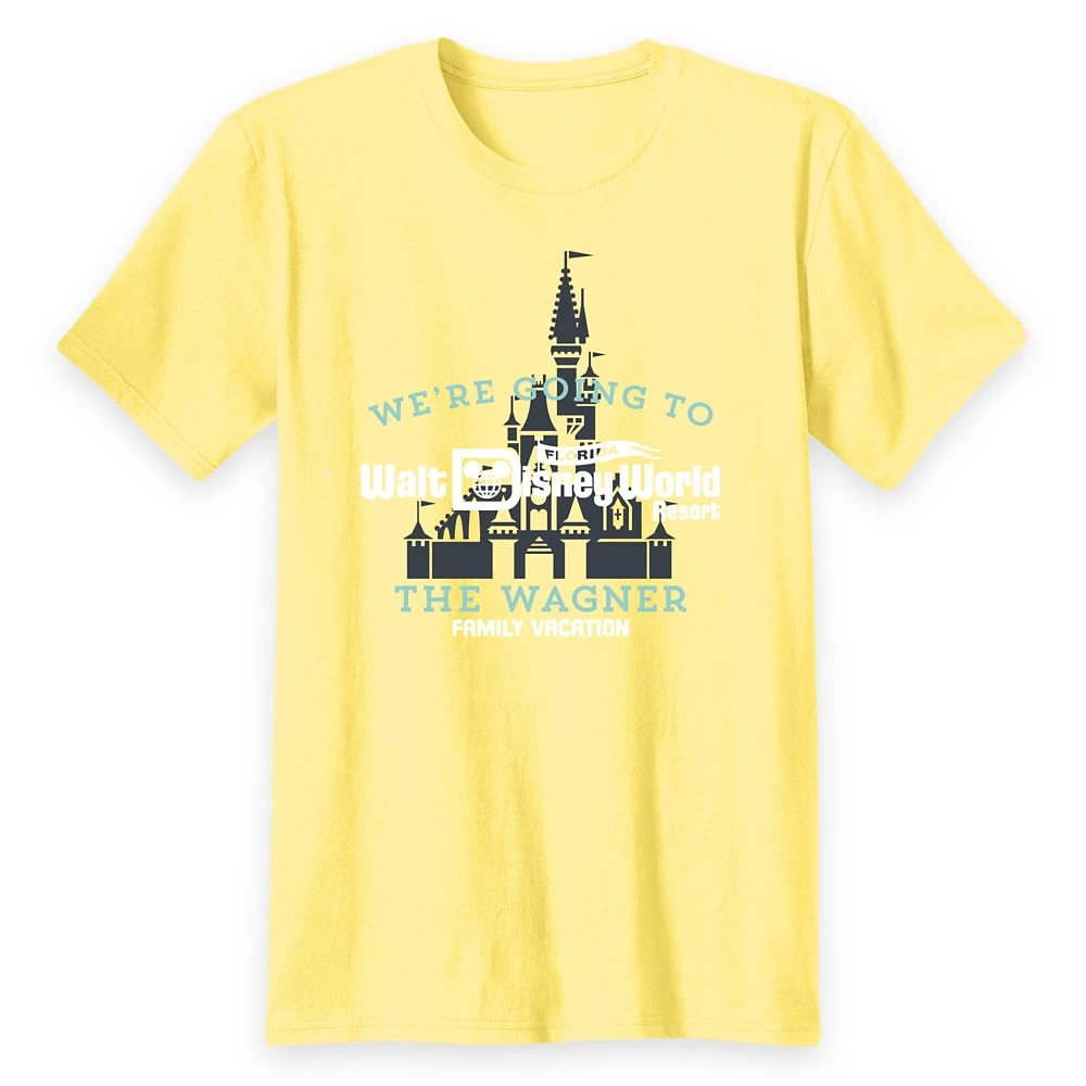 Add a personal touch to your trip down Main Street in this Walt Disney World Resort t-shirt. Available in a choice of colors, it features Cinderella Castle paired with a personalized name, lending a familial flair to any Disney Parks adventure!