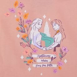 Togetherness makes every day better and so will this Frozen fashion tee featuring stylized Anna and Elsa design plus short dolman sleeves.