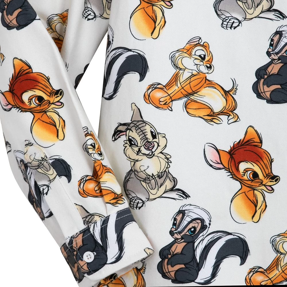 Relax in the cozy comfort of this flannel shirt featuring Bambi and his friends. Adapted from pre-production sketches used in the making of Walt Disney’s Bambi, the adorable allover screen art features Bambi, Flower, Thumper and a little chipmunk who’s nabbed a (midnight) snack. Made of brushed heavyweight cotton flannel, thisΒ super soft shirt will become deer to your heart.