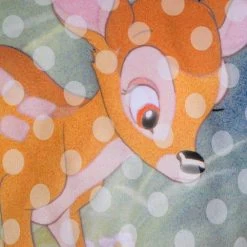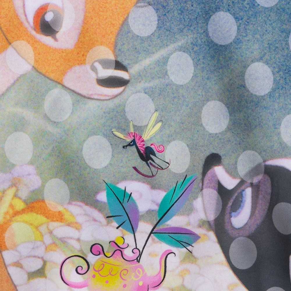 Could it be? Bambi and Thumper in Wonderland? Ingeniously adorable, this Bambi fleece pullover features an allover print inspired by Walt Disney’s Bambi and Walt Disney’s Alice in Wonderland. Sweet Bambi, Thumper and Thumper’s siblings meet flowers and a rocking-horse fly created by legendary Disney artist Mary Blair. Adding to the dreamy scene are polka dots and other Wonderland-inspired icons. A fanciful, wonderful meeting of characters from two beloved classic Disney films, this soft cotton fleece is love at first sight.