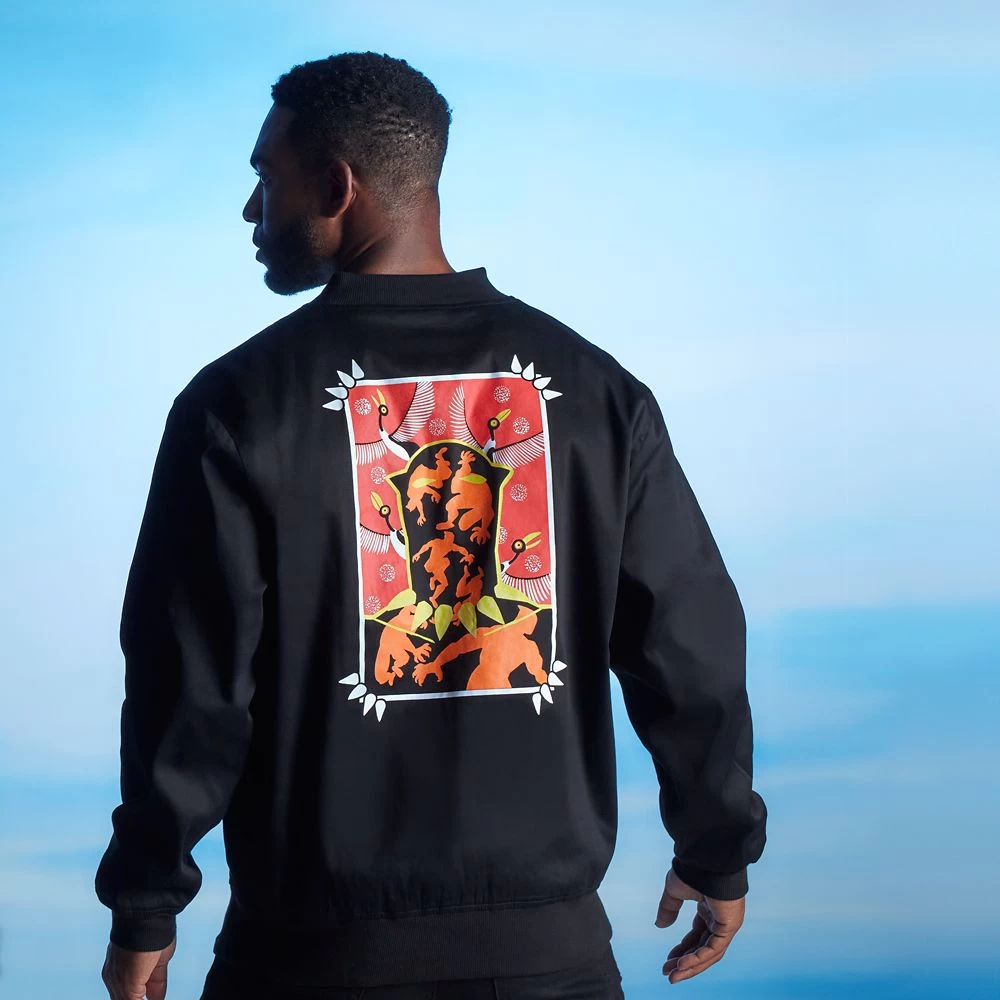 Artist Natacha Bustos honors the heroic life of King T’Challa in the bold design featured on the back of this sateen jacket. Inspired by Marvel Studios’ Black Panther: Wakanda Forever, the cotton bomber jacket features an embroidered outline of the Wakandan legend on the chest, and a full front zip.