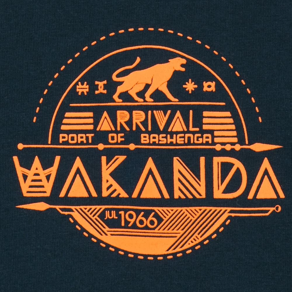 - Appliqué patch on front chest with ”Arrival Port of Bashenga Wakanda Jul 1966” (Black Panther made his Marvel Comics debut in July 1966 in Fantastic Four #52)