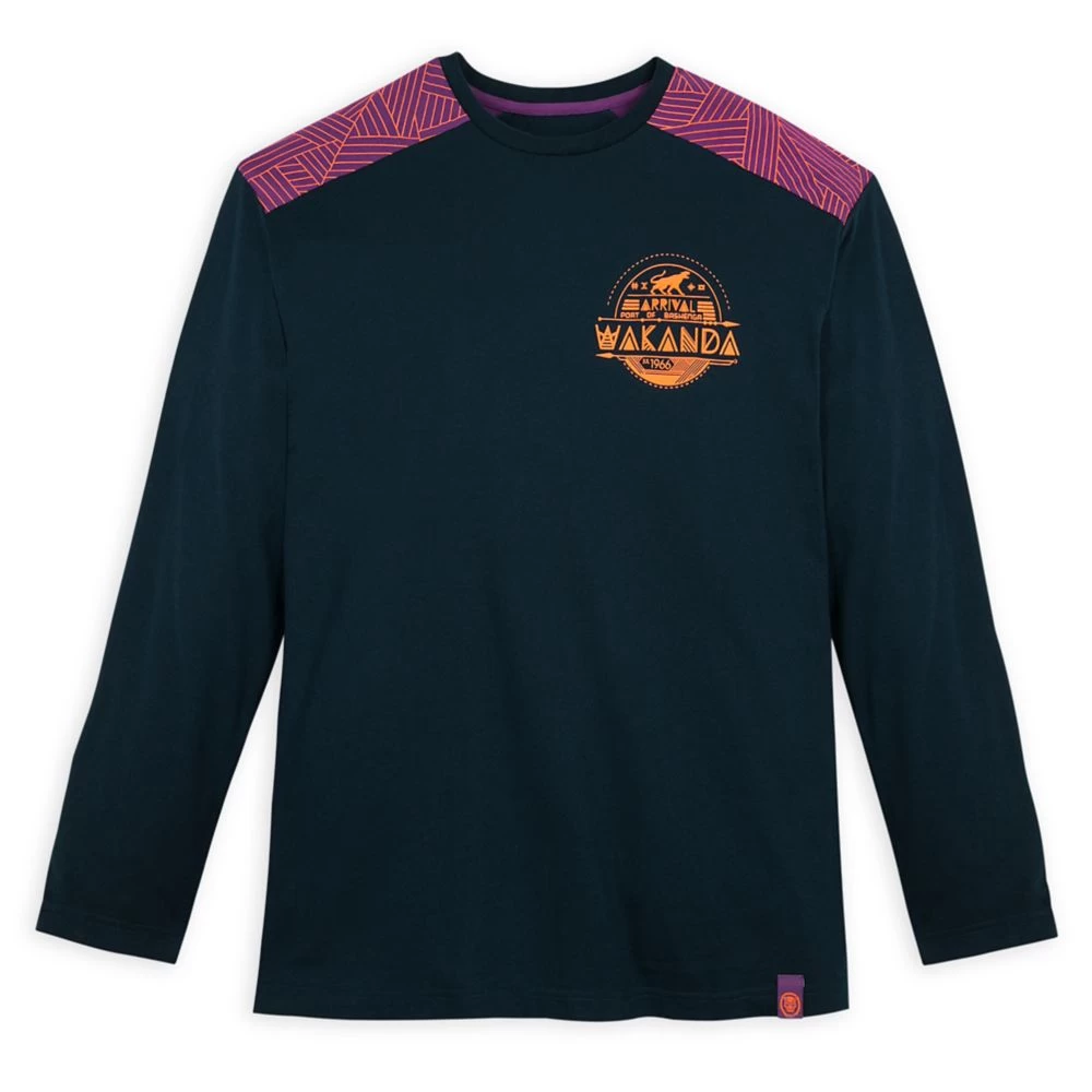 Celebrate your arrival at the ”Port of Bashenga” with this long sleeve top from our Black Panther: World of Wakanda Collection. The pieced design features shoulder sections with geometric graphics and an appliqué patch on the front chest referencing the first appearance of Black Panther.