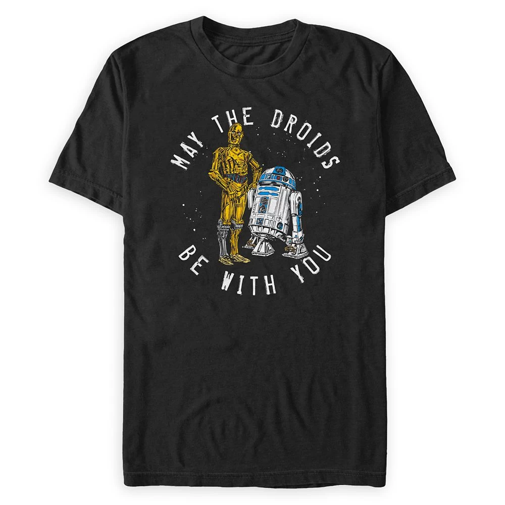 ”May the droids be with you” when wearing this printed upon purchase t-shirt featuring C-3PO and R2-D2. It’s a destined to be a favorite souvenir of Star Wars Day, May the 4th, 2023.