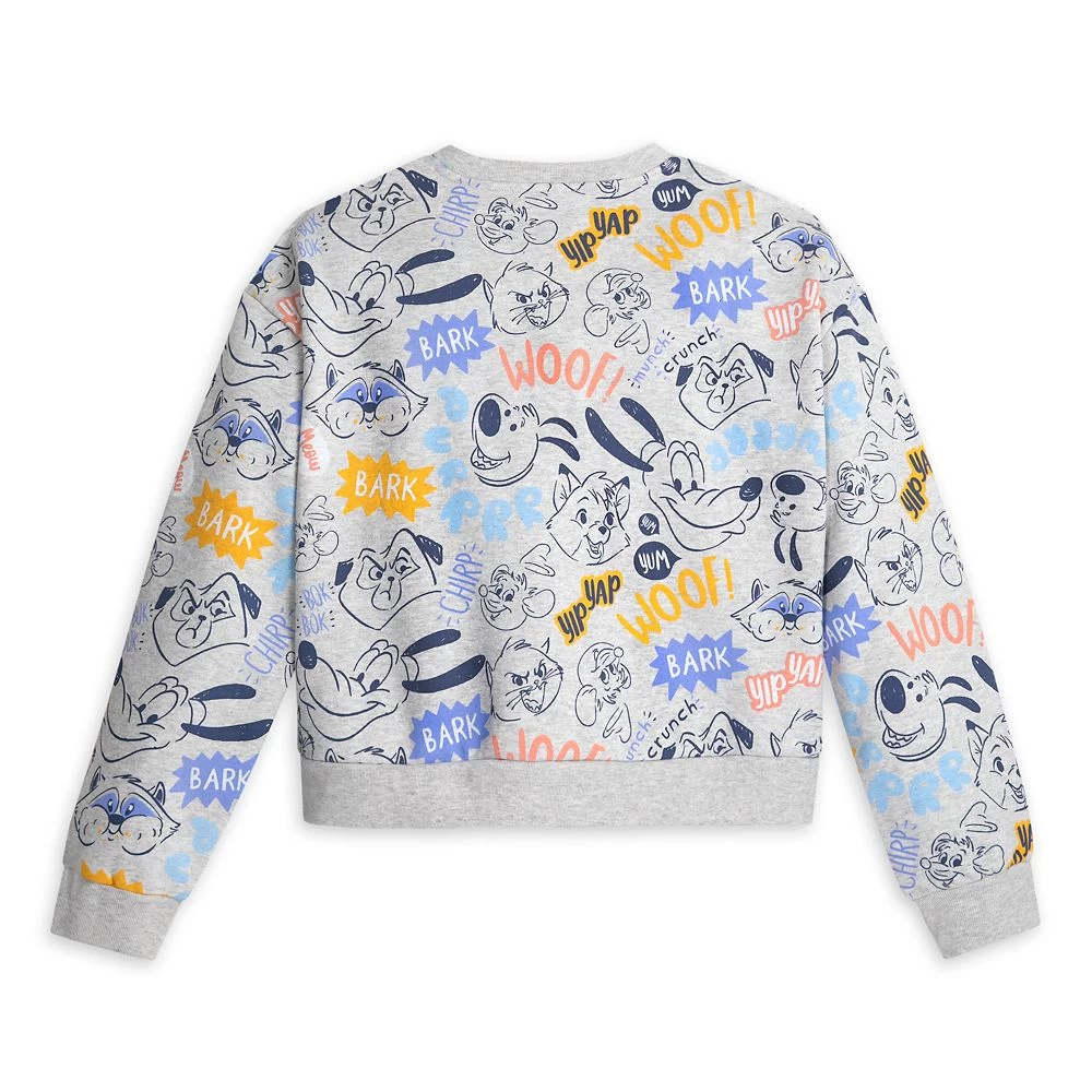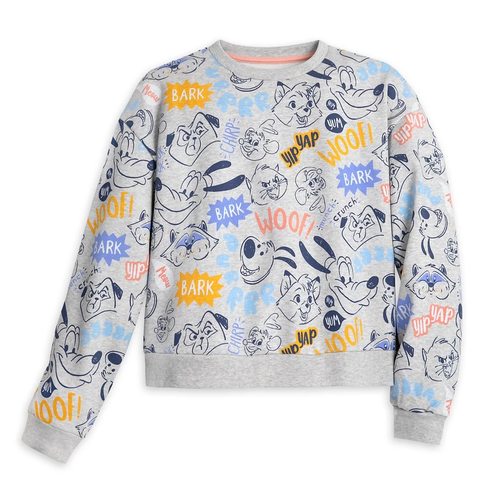 Cozy up with some furry friends in this heathered pullover sweatshirt featuring a cast of Disney critters. Meeko, Pluto, Little Brother and Tod are among theΒ collection of characters featured in the allover design along with some of their noisy sounds. Why not be as cute and cuddly as they are as you show your animal magnetism!