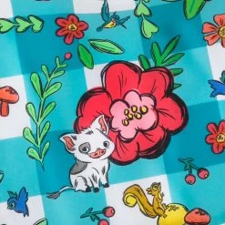 Disney’s happiest helpers–such as Flounder, Chip, Pua and Pascal–are featured on this checkered woven dress with flutter wing sleeves and gathered skirt.