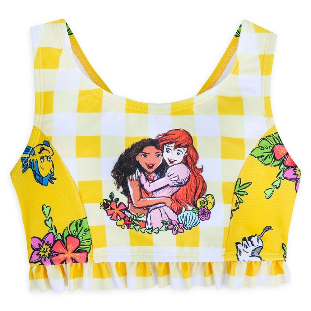 Ariel, Moana and their closest pals, Flounder and Pua, make every splash, dip and dive more fun with this Disney Princess two-piece swimsuit. Making it feel extra special are pretty ruffles and the bright and happy yellow checkered pattern. The built-in UV protection means this suit is as smart as it is adorable – just like your little one.