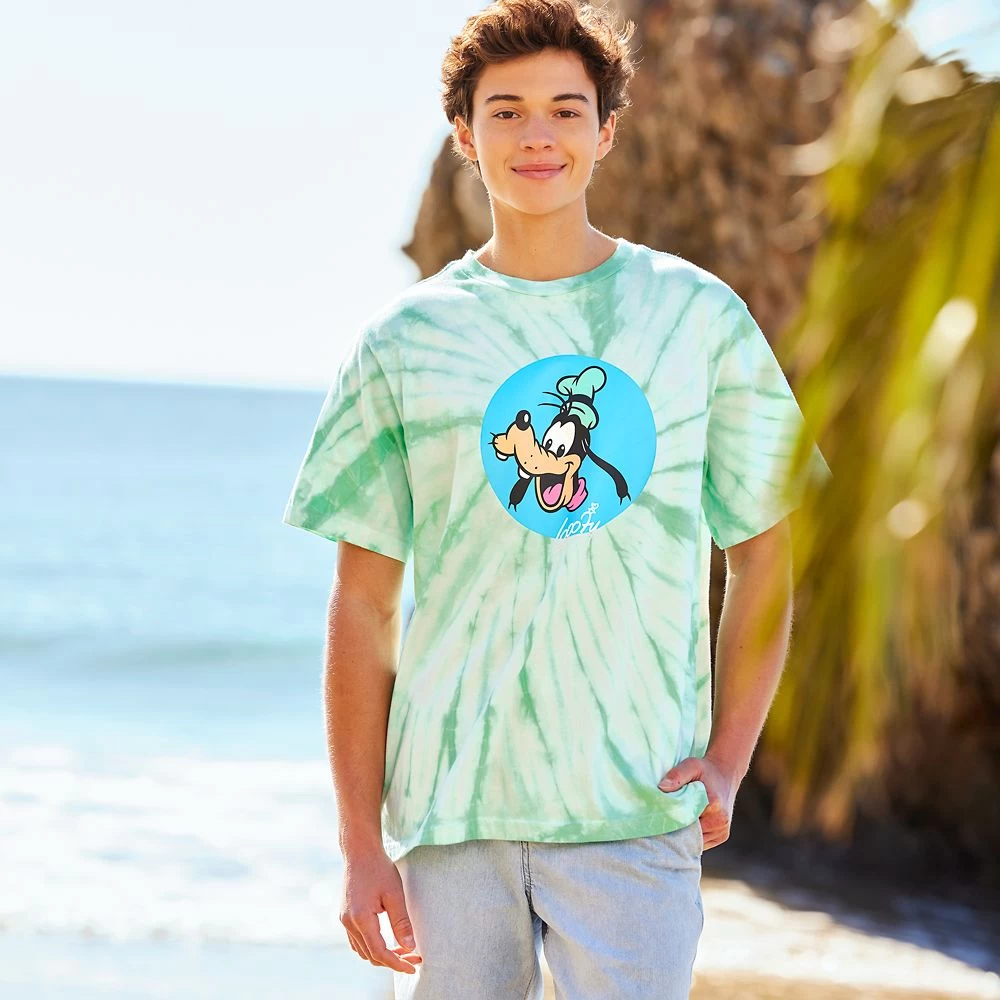 Your ”dawgs” will go dippy over this soft cotton tee featuring a spiral tie-dye pattern, vibrant character art and ”Goofy” signature.