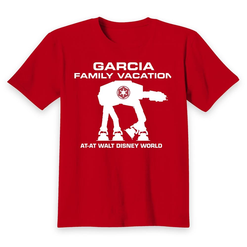 They’ll team up with an AT-AT when wearing this Star Wars t-shirt on their trip to Walt Disney World. Featuring a crew neckline and an All Terrain Armored Transport walker, it can be customized with their family’s name.