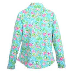 Mickey and Minnie frolic among tropical flora and Fantasyland Castles on this lovely print design by Lilly Pulitzer. This half-zip, round hem pullover is a versatile part of your Walt Disney World vacation wardrobe as an activewear staple or layer.