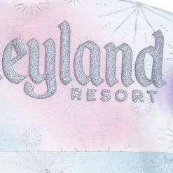 - Puffy glitter ink Disneyland logo across back shoulder and sleeves