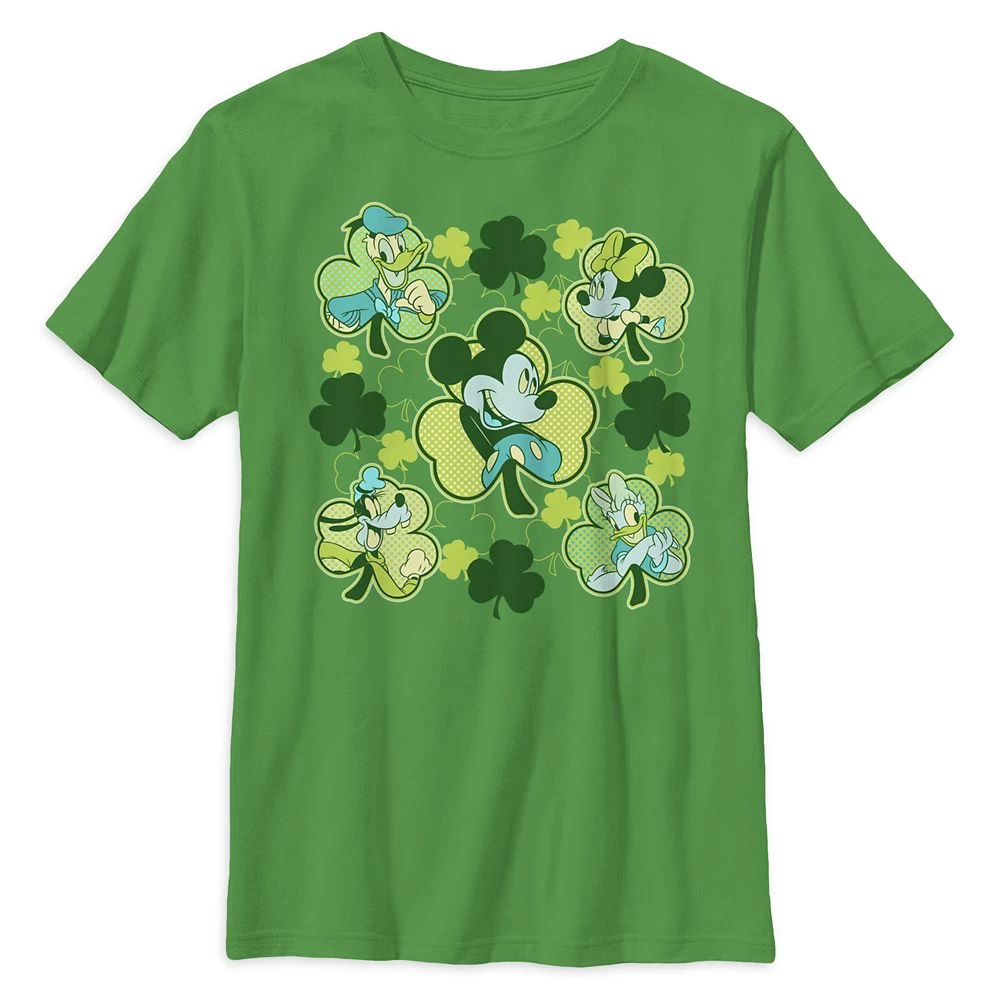 This green-friendly tee will definitely improve the environment as Mickey Mouse and the gang are all smiles as theyΒ celebrate St. Patrick’s Day. Minnie, Donald, Daisy and Goofy join Mickey in the fun design that’s covered in shamrocks so you’ll all be ready for March 17.