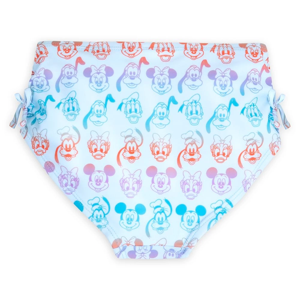 Great style meets the best of pals with this Mickey Mouse and Friends two-piece swimsuit. Mickey, Minnie Mouse, Donald Duck, Daisy Duck, Goofy and Pluto are all smiles in the fun and colorful allover pattern. The cinched top and the UPF 50+ built-in UV protection makes it the cutest, smartest bikini on the beach.