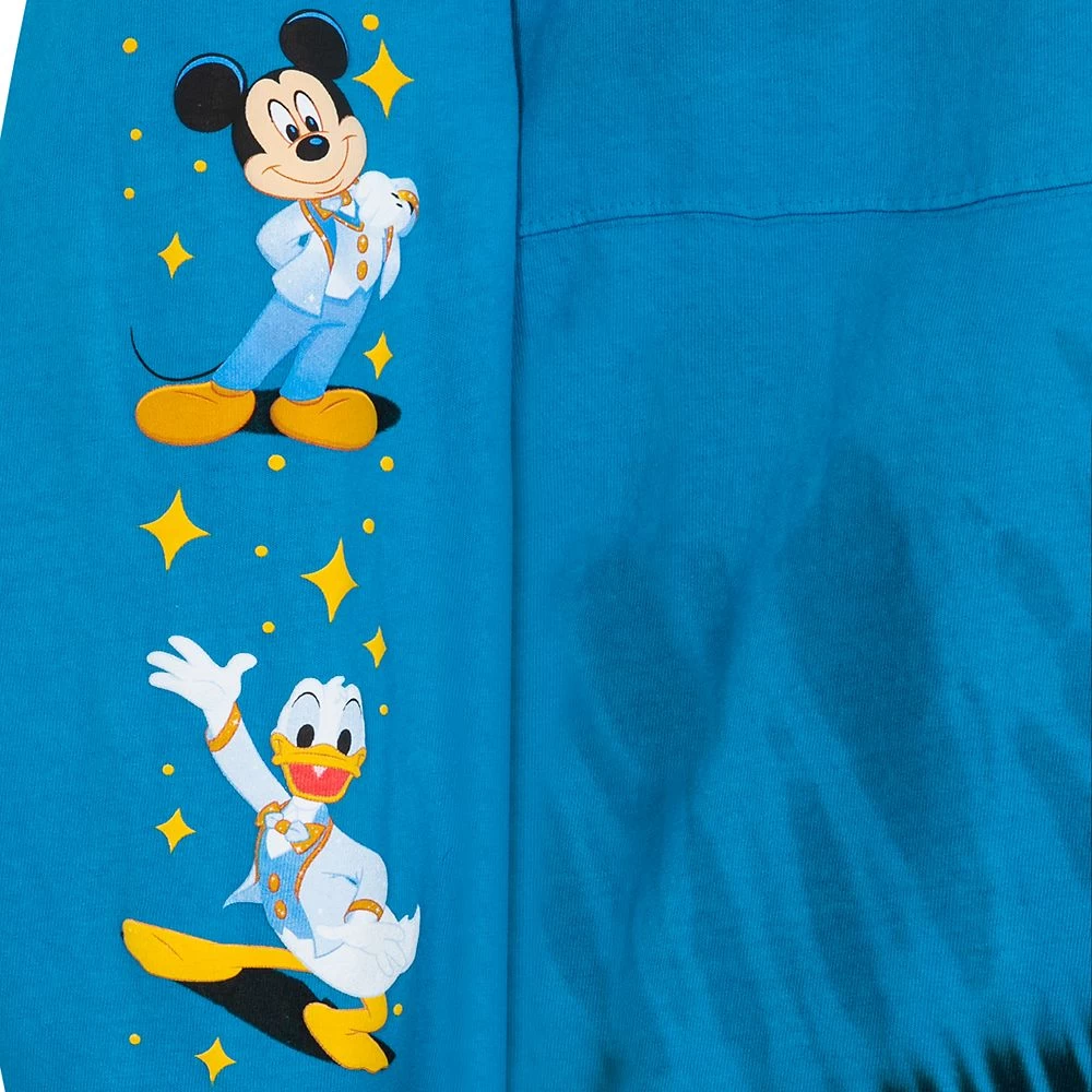 The Most Magical Place on Earth will be making warm memories long after its 50th Anniversary with this dramatic tie-dye Spirit Jersey! The Walt Disney World logo is featured in large gold foil lettering across the back shoulder while Mickey and the gang bring character to the sleeves.