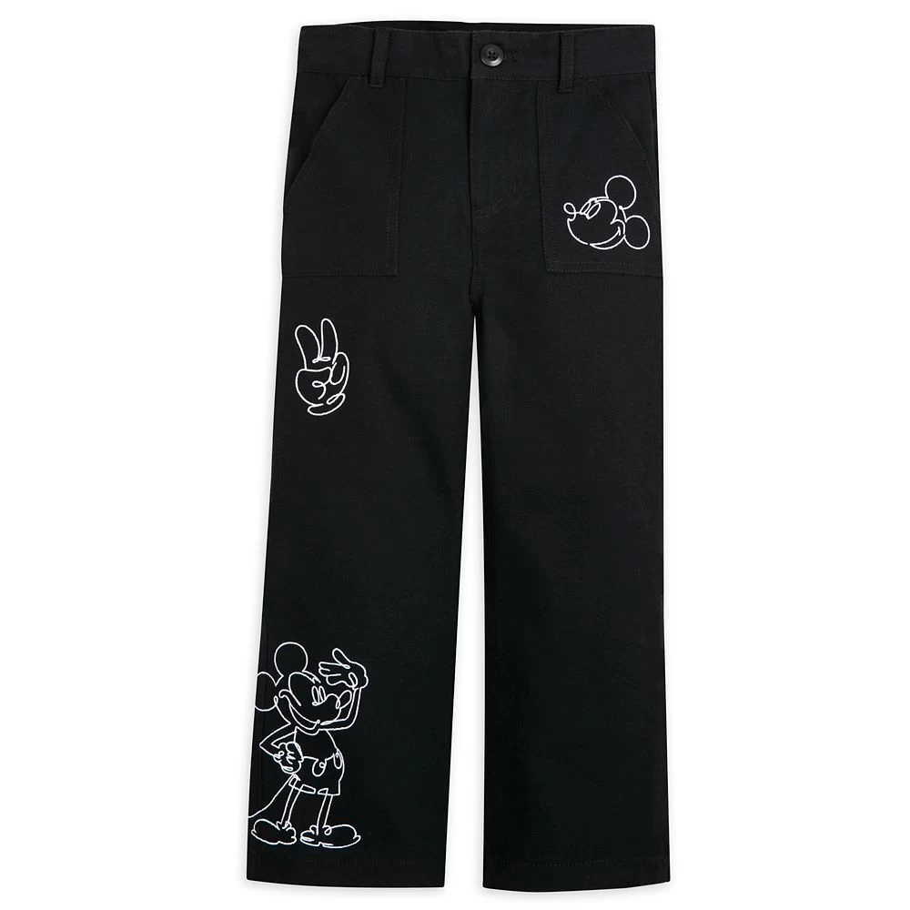 Just like Mickey Mouse and your child, these vintage-style Mickey Mouse pants make anything more special. Super versatile, they go with everything, but they’re anything but basic. White embroidered art of Mickey Mouse and Mickey glove icon against the black fabric up the wow factor like magic. Classic straight-leg styling with button closure, zip fly and side pockets.