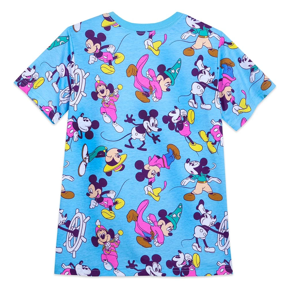 Mickey’s many movie, TV and comics roles get top billing on this jersey knit tee. The colorful allover print features Mickey in some of his most memorable films includingΒ Steamboat Willie, Fantasia, and many more!