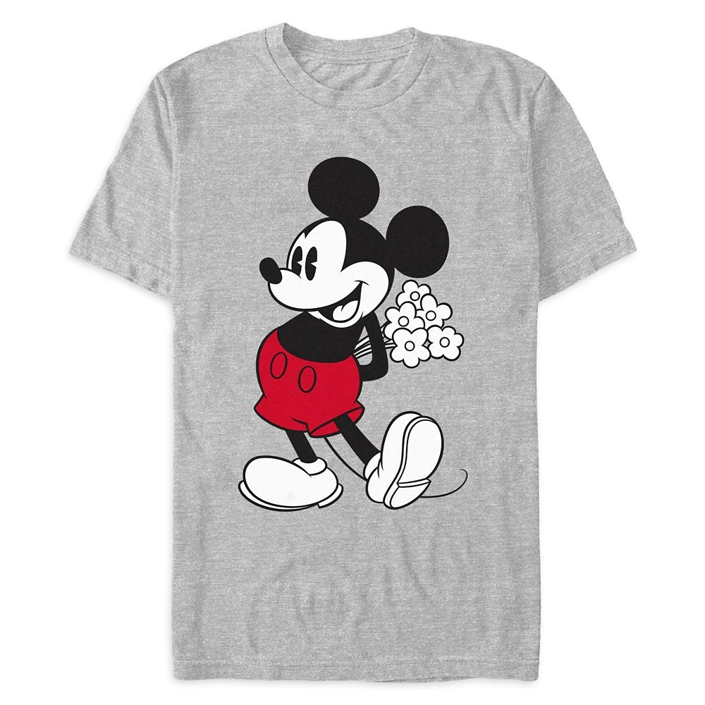 Love is in the air! Bashful Mickey pauses before presenting his sweetie Minnie with a bouquet of flowers, hoping to get up the nerve to ask her for a date on this heartfelt heathered tee that has no rival for flattering your springtime style.