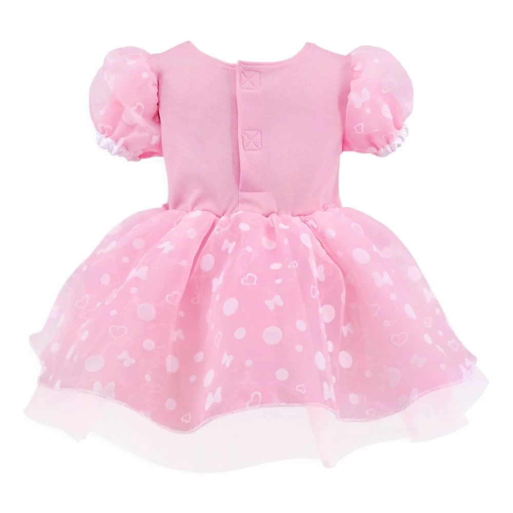 Baby looks so pretty-in-pink wearing this whimsical Minnie Mouse costume. Animated dreams are brought to life by the patterned polka dot skirt with ruffled mesh layers, a ”Peter Pan” collar, puffed sleeves, and golden glitter trims.