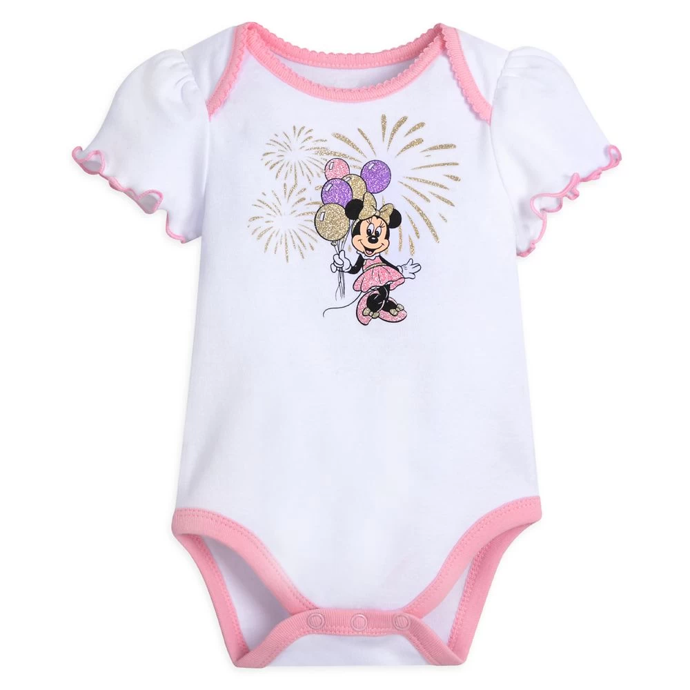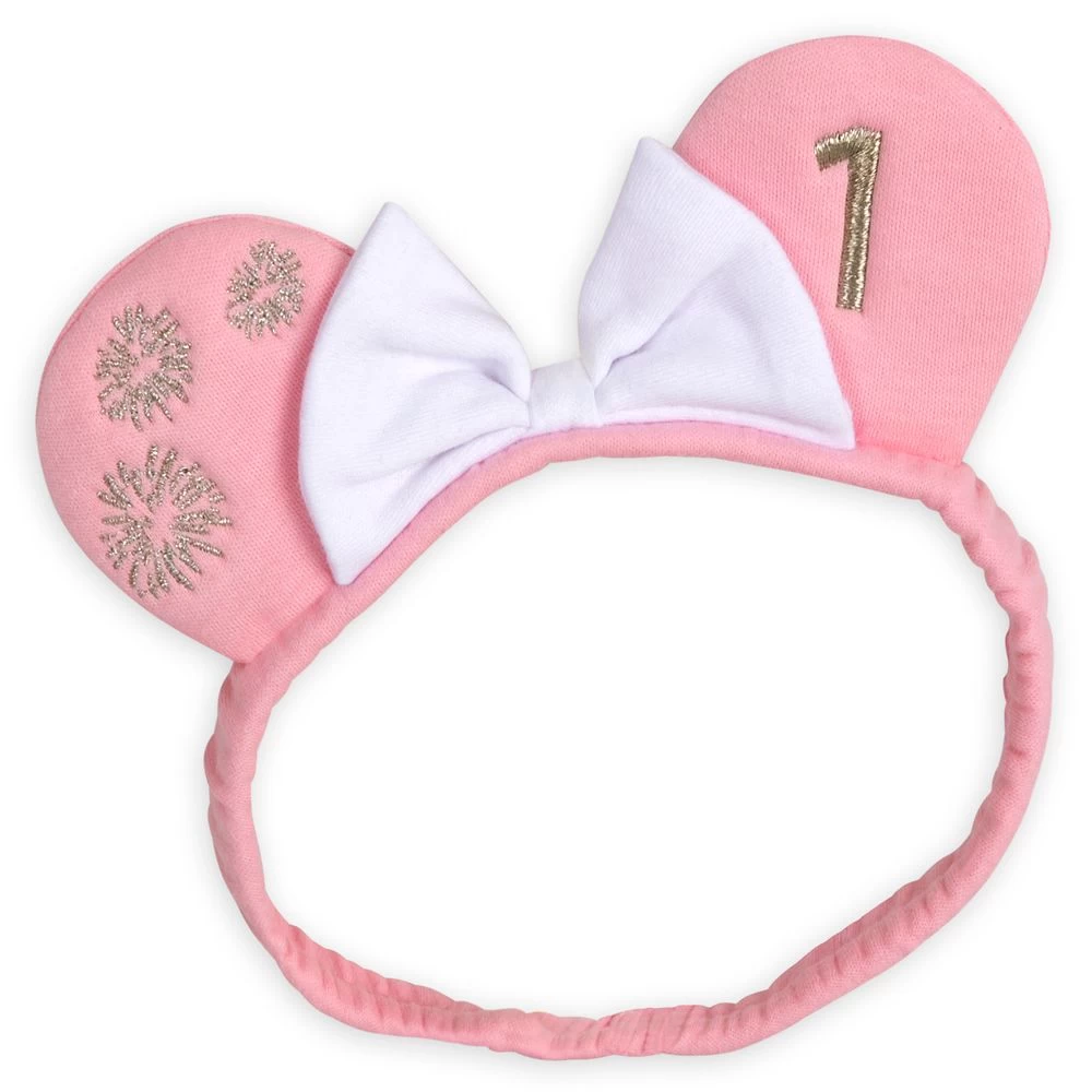 They will be more than ready for their closeup wearing this soft and sweet Minnie Mouse first birthday gift set. The two-piece set includes a snuggly bodysuit and the cutest Minnie Mouse ears headband. The bodysuit features glittery screen art of Minnie holding a balloon bouquet amid a shower of fireworks. The soft elastic headband is embroidered with the number ”1” and fireworks for the milestone occasion. After all, you’re only one once.