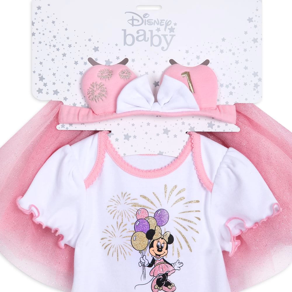 - Two-piece set includes bodysuit and Minnie Mouse ears headband