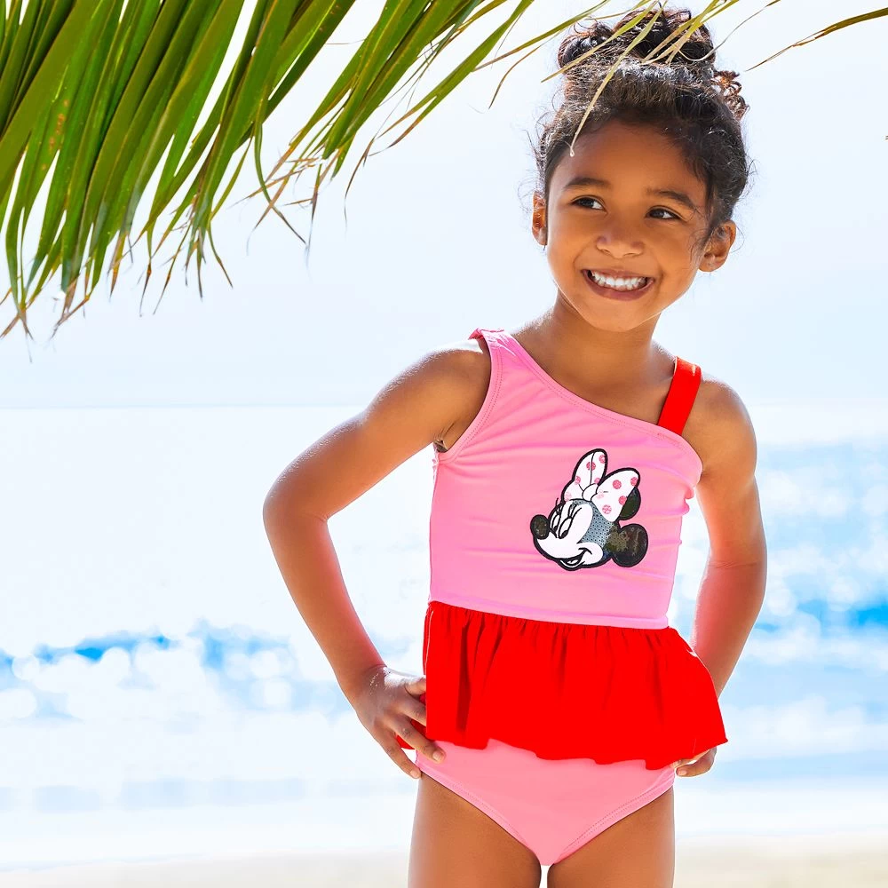 For your little one who adds sparkle to every day, this Minnie Mouse two-piece swimsuit is sure to dazzle. They’ll love the adorable Minnie design accented with sequins, stylish shoulder straps and the flouncy skirt that begs to be twirled in. This pretty bikini offers UPF 50+ built-in UV protection, which is a must for the child who outshines the sun.