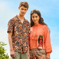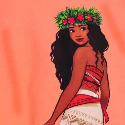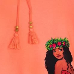 Fashionable wayfinders will be see-worthy in this bold Moana pullover hoodie. A striking image of the teenage explorer is pictured on the front of this salmon pink top which has subtle embroidered floral detailing. With its semi-cropped waist, dropped shoulders and tasseled drawstring tie, it’s sure to bring a wave of admirers.