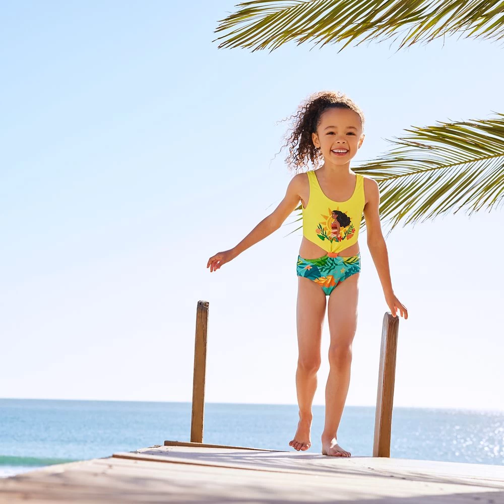 Your little beachcomber will love this Moana swimsuit featuring pretty screen art of their seafaring hero. The mock bikini style is made all the dreamier with the bright island flower print. Inspired by Disney’s Moana, it’s perfect for a dip in the pool or exploring a faraway beach, wherever adventure may lead.