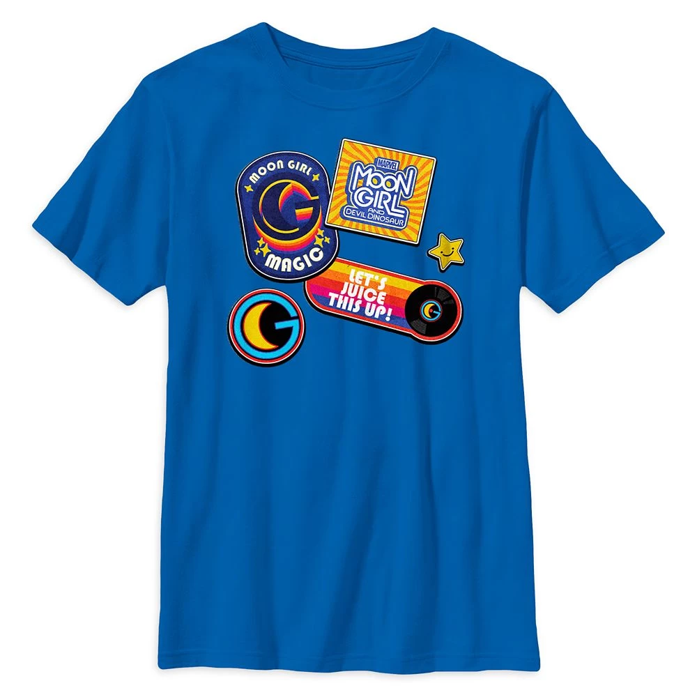 ”Let’s Juice This Up!” Words to thrill by give this bright and happy Moon Girl and Devil Dinosaur T-shirt serious retro vibes. Inspired by Marvel’s animated TV series, this cotton tee features cool and colorful screen art that looks like a collection of vintage-era patches. Your kiddo will look like a hero in it, even when they’re just hanging out with their favorite dinosaur.