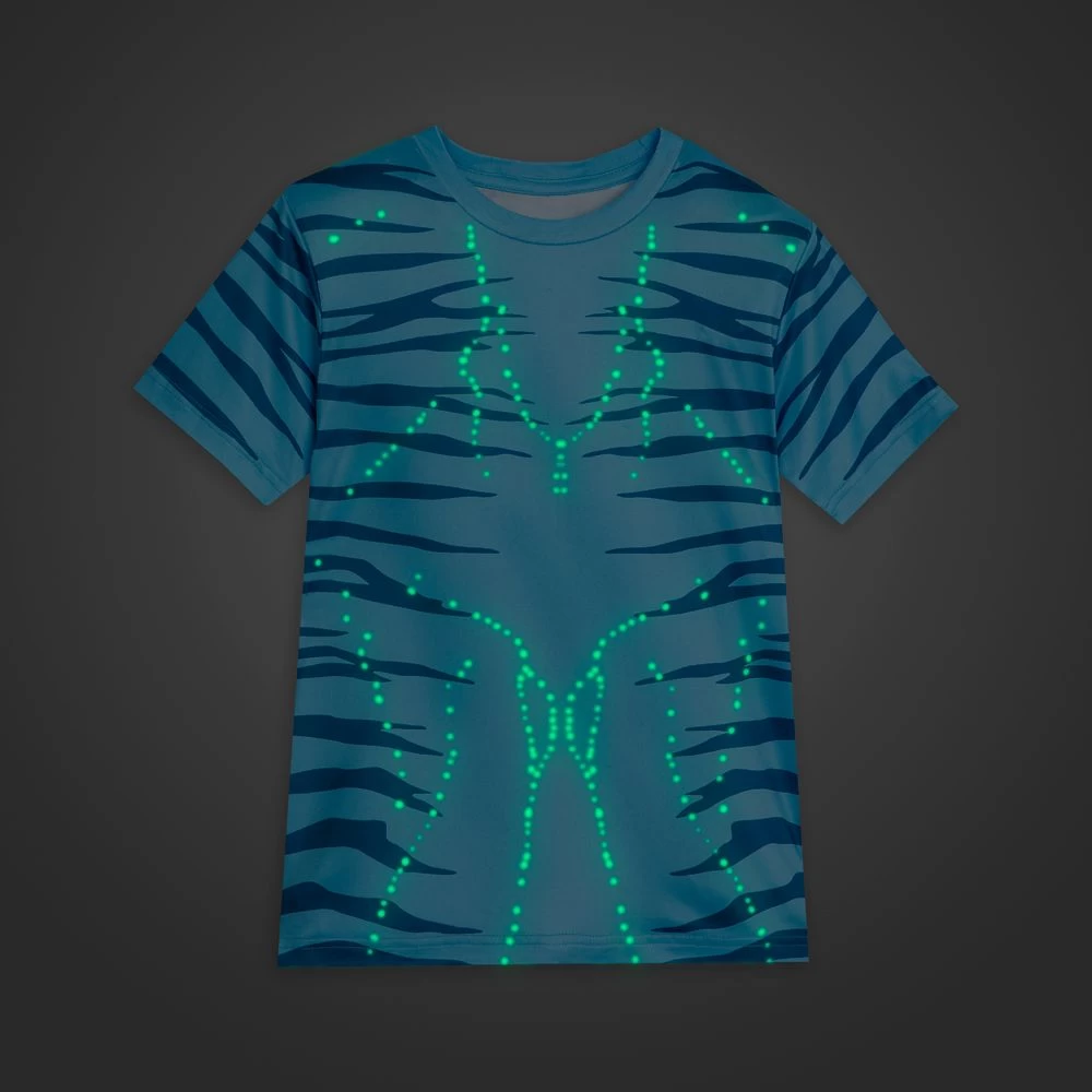 They will take a step closer to having their own Na’vi avatar when they wear this t-shirt with glow-in-the-dark design elements. The screen art simulates the patterned skin of the fantastical characters as seen at Walt Disney World’s Pandora – The World of Avatar.