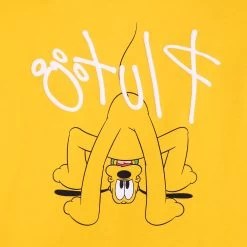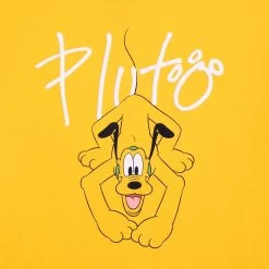 Hot dog! Mickey’s best pal is ready for play any time of day on this whimsical tee. With its bold yellow coloring, the fun design features Pluto and his puff ink signature on the front and a playfully mirrored image on the back.