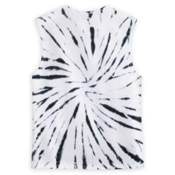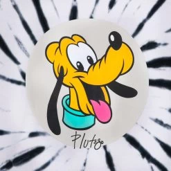 Hot dog! Man’s best friend is his soft cotton tank tee featuring a spiral tie-dye pattern, vibrant character art and ”Pluto” signature.