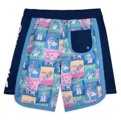 Greetings from Dagobah! These Star Wars adaptive swim trunks feature an allover print of fanciful travel stickers from some top spots in the galaxy including Endor, Tatooine and even the Death Star. R2-D2, C-3PO, Yoda, the Mandalorian, Greedo, Darth Vader and an Ewok star in the vintage-style art complete with fun slogans. Specially designed for ease of use, these shorts have ring snaps on the side panels to provide full opening and a back pocket with a metal grommet vent hole and self-stick fabric closure. Topping it off is UPF 50+ built-in UV protection for safer fun in the sun.
