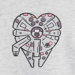 Romance conquers the Star Wars galaxy with this pullover Spirit Jersey featuring a heart-shaped Millennium Falcon on the front and Han Solo’s famous retort, ”…I know” on the back. Look for the companion quote Spirit Jersey sold separately.