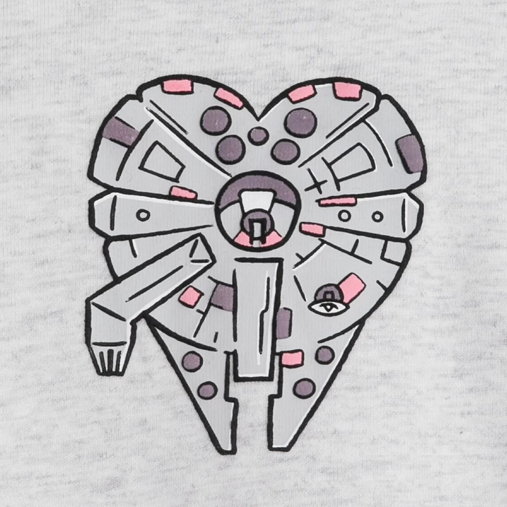 - Puffy ink heart-shaped Millennium Falcon on chest