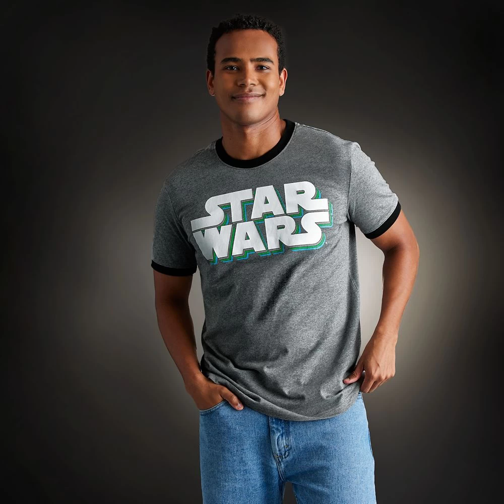 The Force is strong with this one. Show off your allegiance to the greatest galactic saga with this jersey cotton t-shirt featuring a Star Wars logo screen print and trendy ringer details.