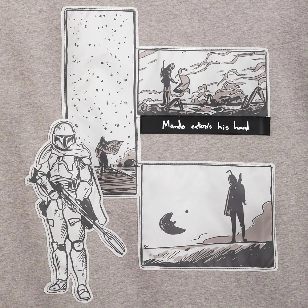 Pay homage to the series that introduced us to Din Djarin and Grogu with this cool Star Wars t-shirt. It features appliqués with artwork inspired by the Disney+ series, including the pivotal moment The Mandalorian meets baby Yoda which started their journey together.