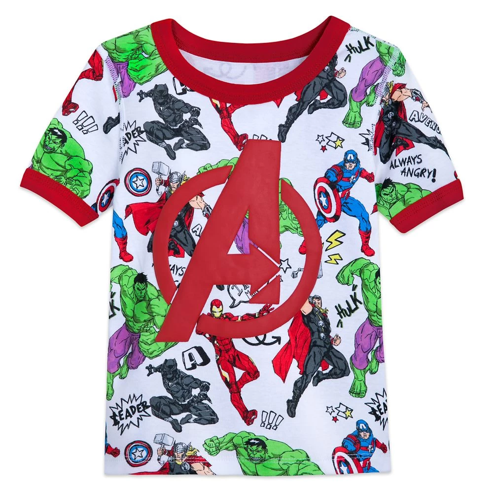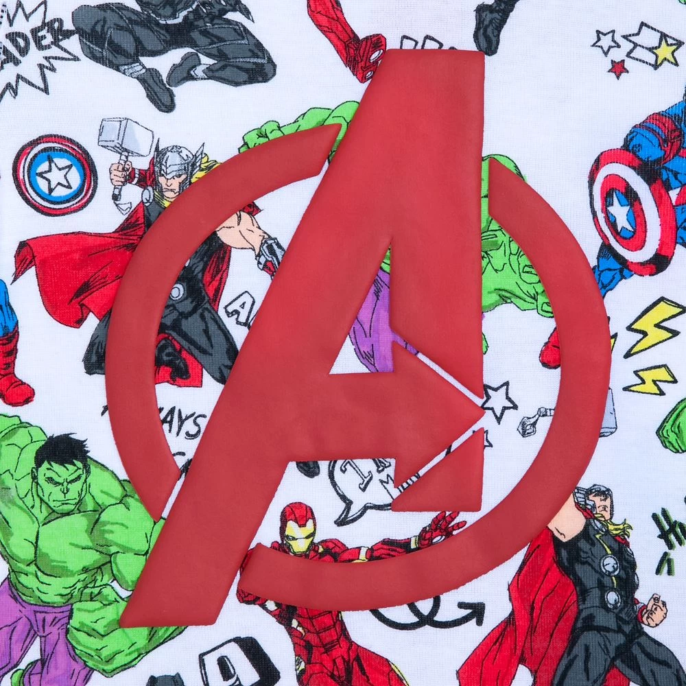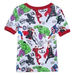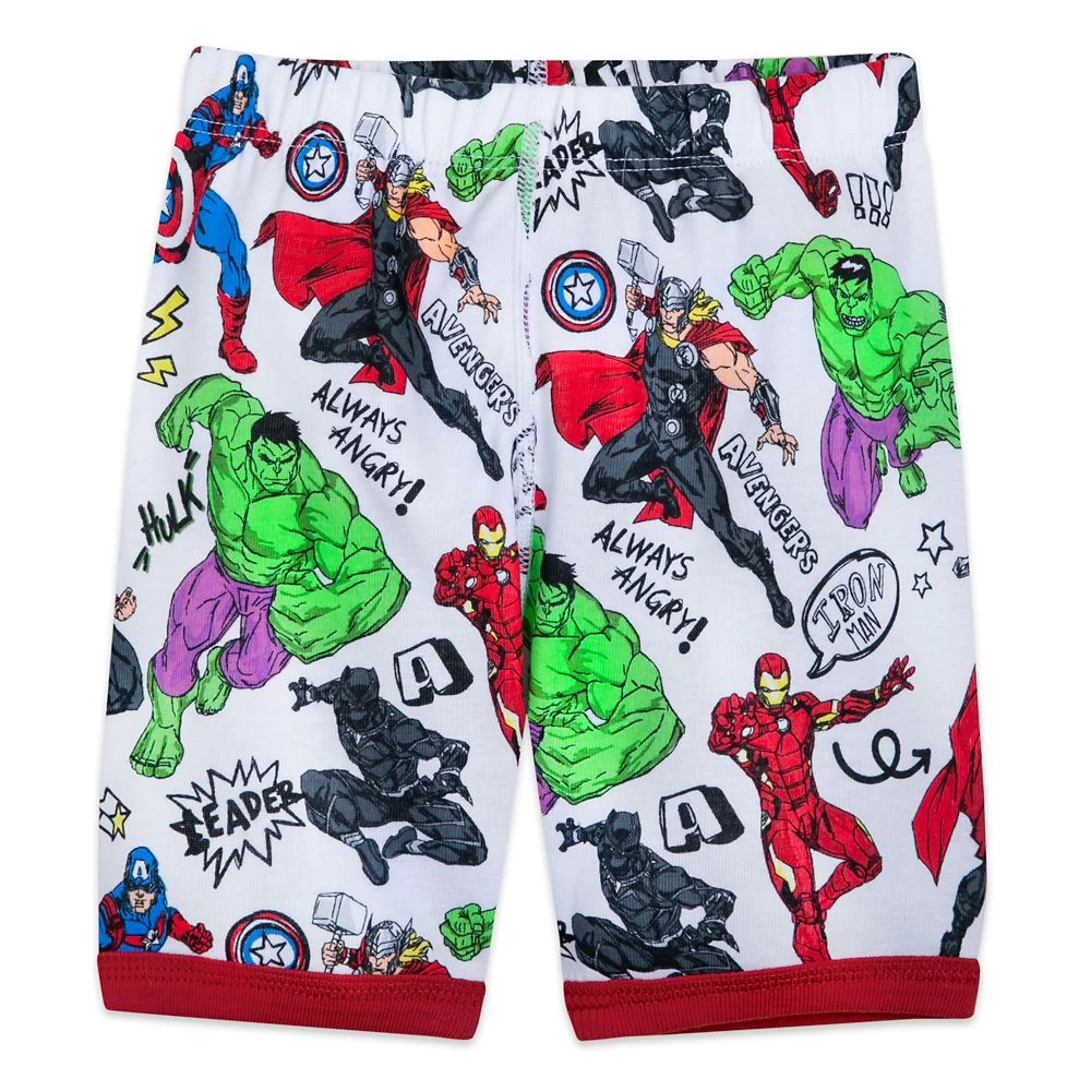 Renew your flagging powers with a team of mighty Marvel Comics heroes. Avengers assemble on this super-soft short pajama set that will launch dynamic dreams of nightly adventures. Captain America, Iron Man, Black Panther, Thor and Hulk are featured in the bold allover print of this two-piece sleepwear set.