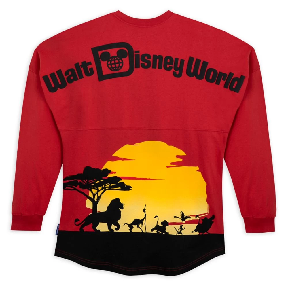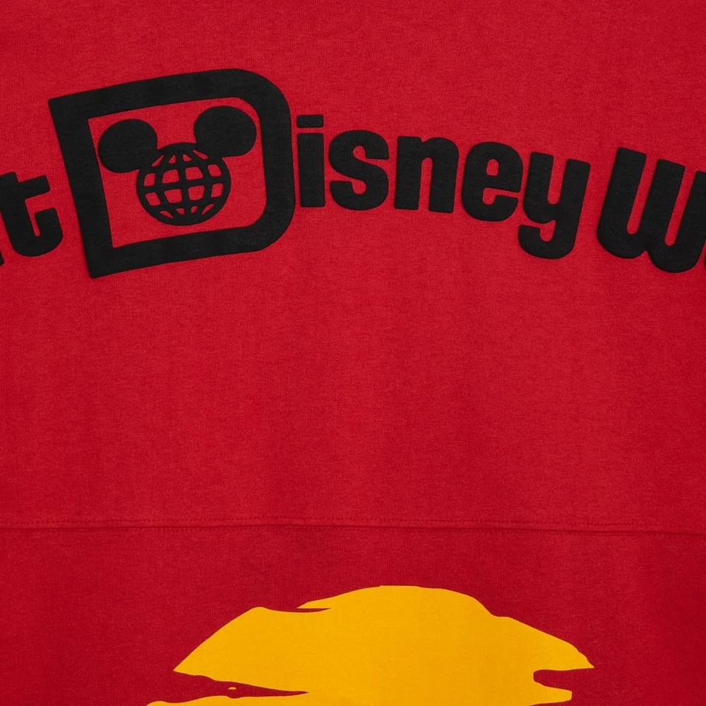 Express a worry free philosophy in this souvenir Spirit Jersey inspired by Disney’s The Lion King, featuring the ”Hakuna Matata” crew and puffy Walt Disney World logo on back. Sunset graphics and silhouettes are set against a brilliant red fabric.