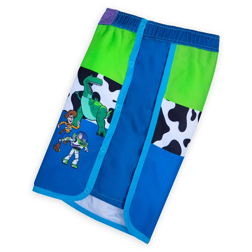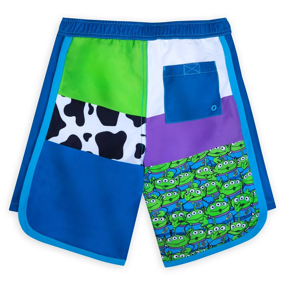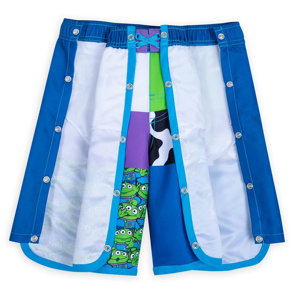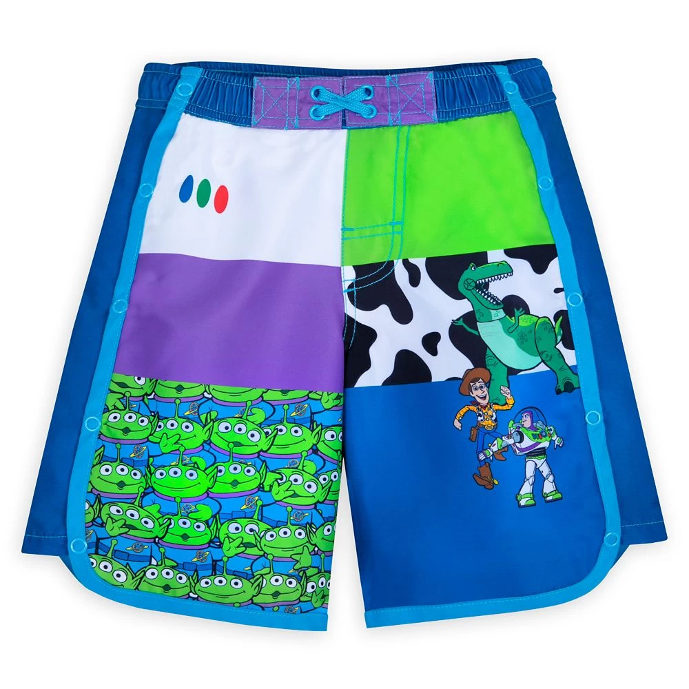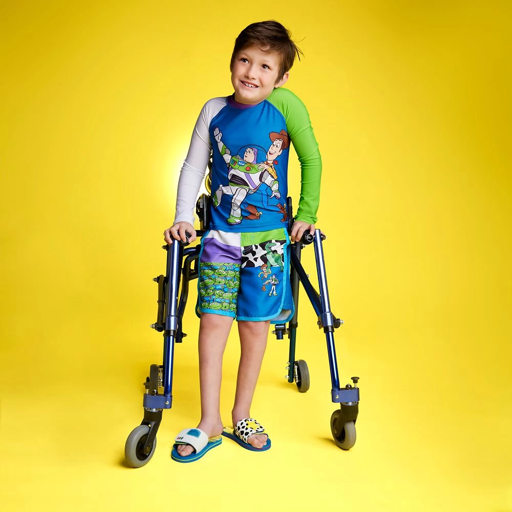 Woody, Buzz Lightyear and Rex round up the fun and a whole lot of Space Aliens on theseToy Story adaptive swim trunks. These adorable shorts feature screen art of the heroes, an allover print featuring motifs inspired by Disney and Pixar’s Toy Story and a screen-printed faux fly on the front. Specially designed for ease of use, they have ring snaps on the side panels to provide a full opening and a metal grommet vent hole and self-stick fabric closure on the back. Heroes think of everything.