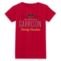 Add a personal touch to your trip down Main Street in this Walt Disney World scoop neck t-shirt. Available in a choice of colors, it features Mickey’s silhouette paired with a personalized name, lending a familial flair to any Disney Parks adventure!